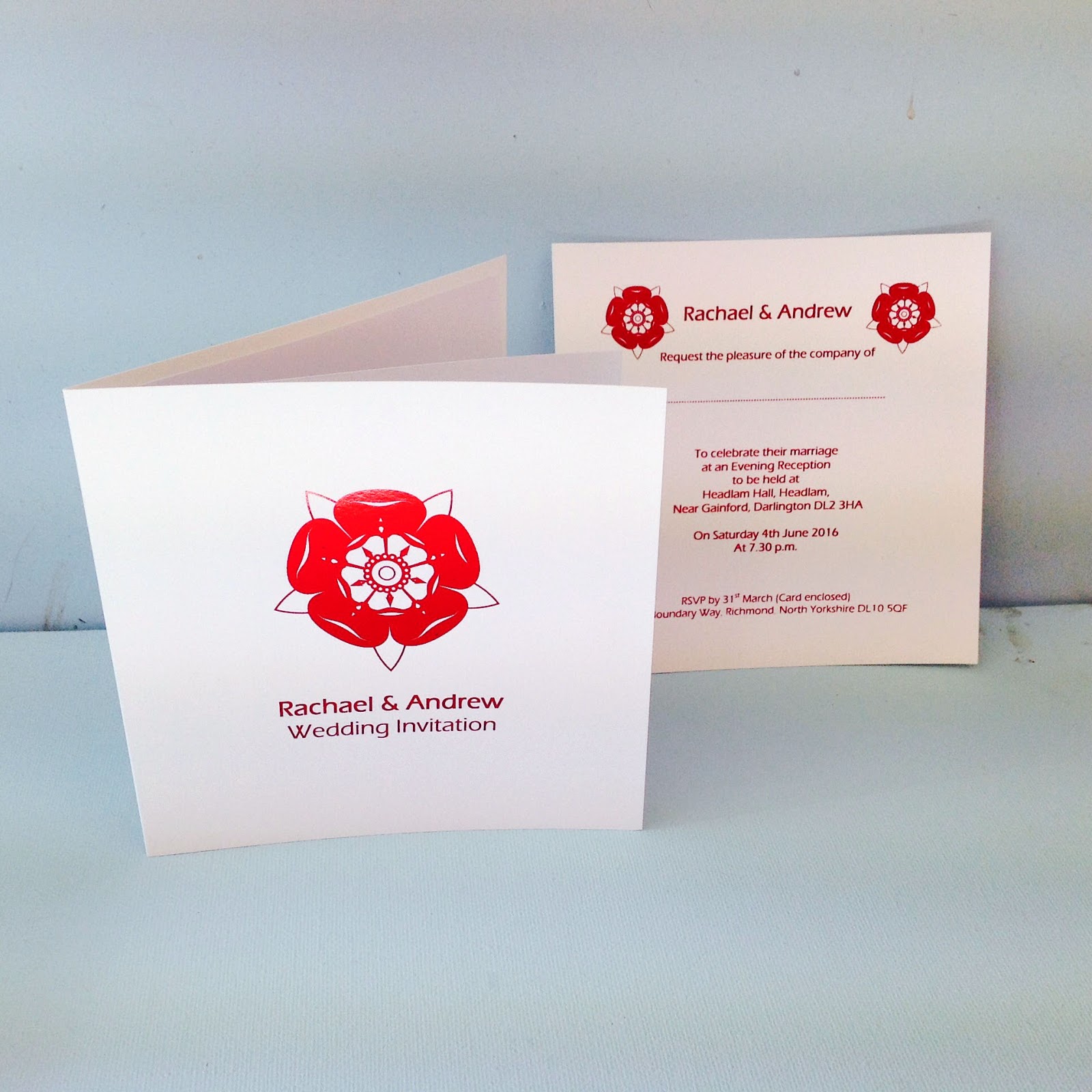 Real Yorkshire Weddings - Rach & Andy - Headlam Hall Hotel Yorkshire & Lancashire Rose wedding invitations & Stationery