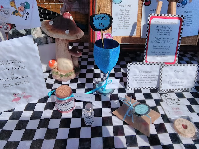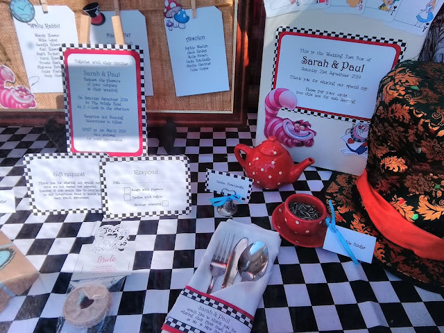 White rabbits, mad hatter, the queen of hearts or if you are having an Alice in Wonderland themed wedding or party perhaps a Tea Party?