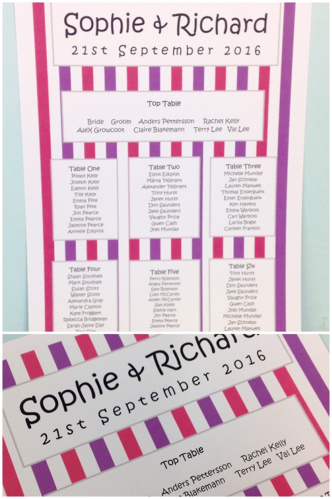 We will reproduce your seating plan EXACTLY as we receive it so please check for Capital letter, punctuation and spelling as this is not our responsibility.
