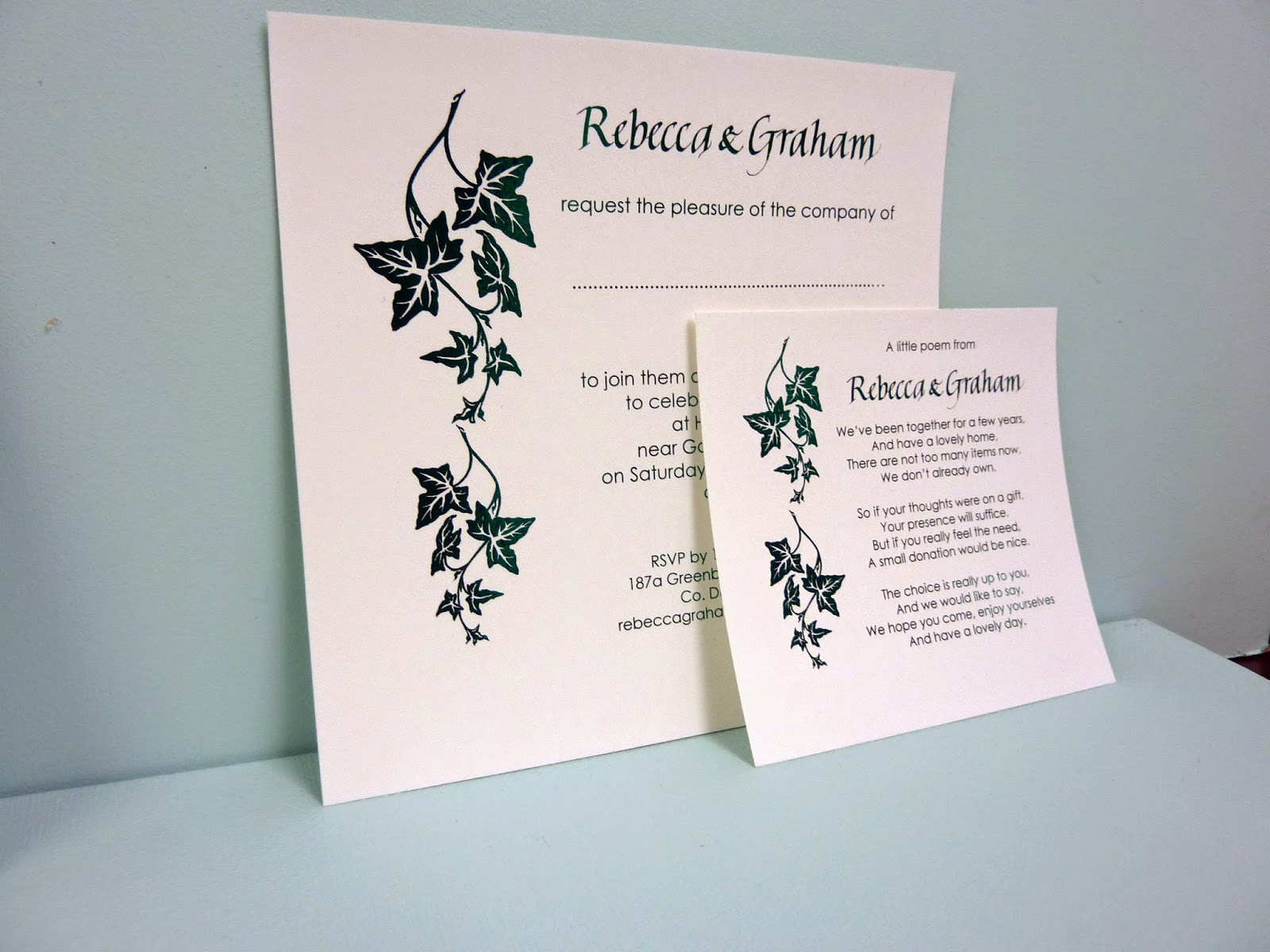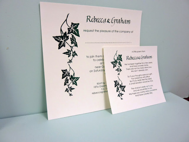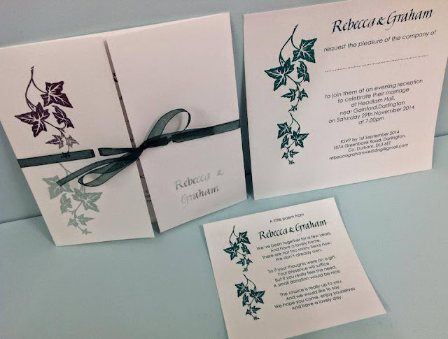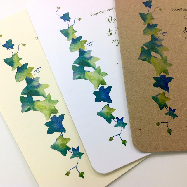 Below are just some of the Ivy Inspired invitations and stationery we have made and the beauty of Ivy is it goes with absolutely anything.