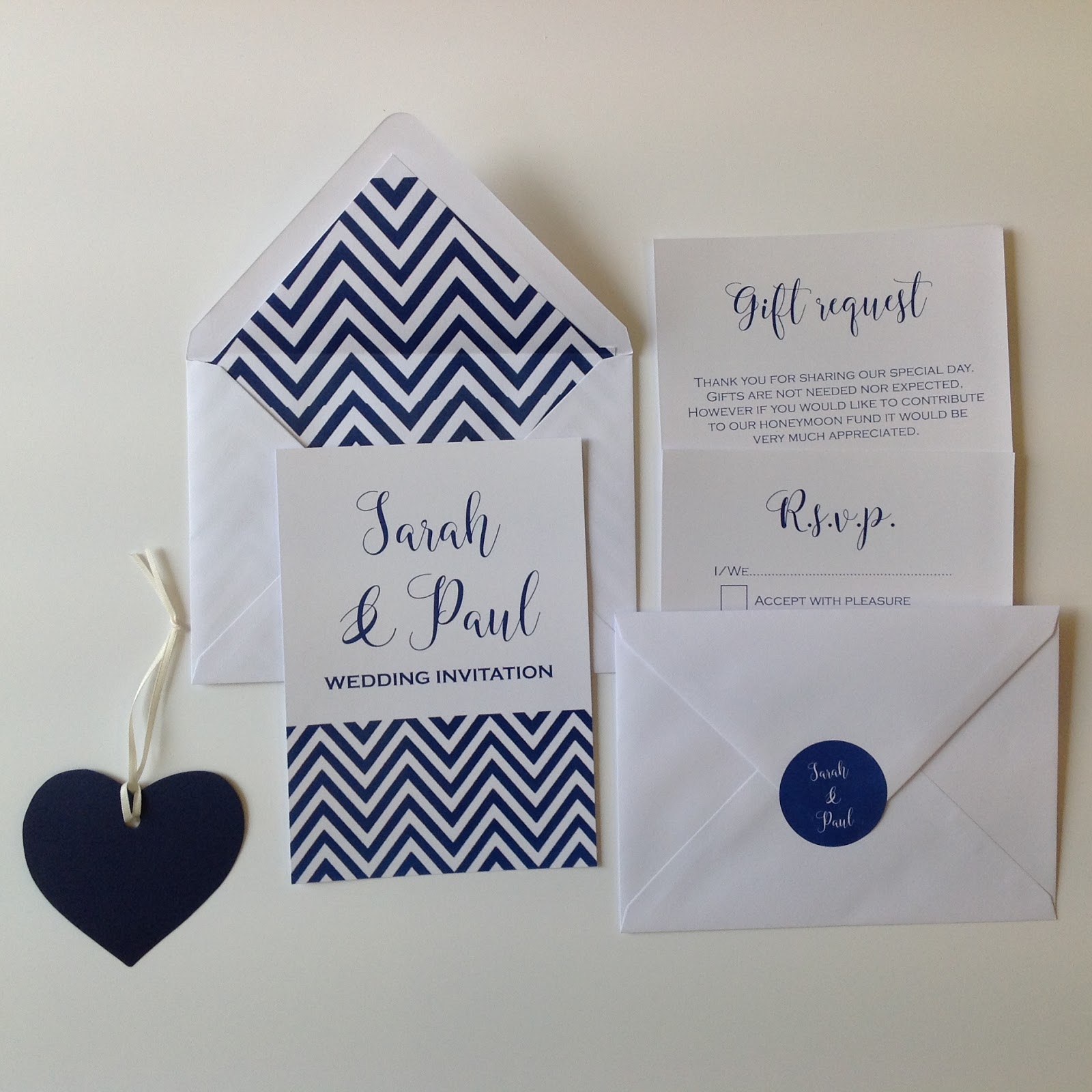 Here are just a few of the Navy and White themed wedding invitations and stationery we have made for couples using this theme over the past couple of years.